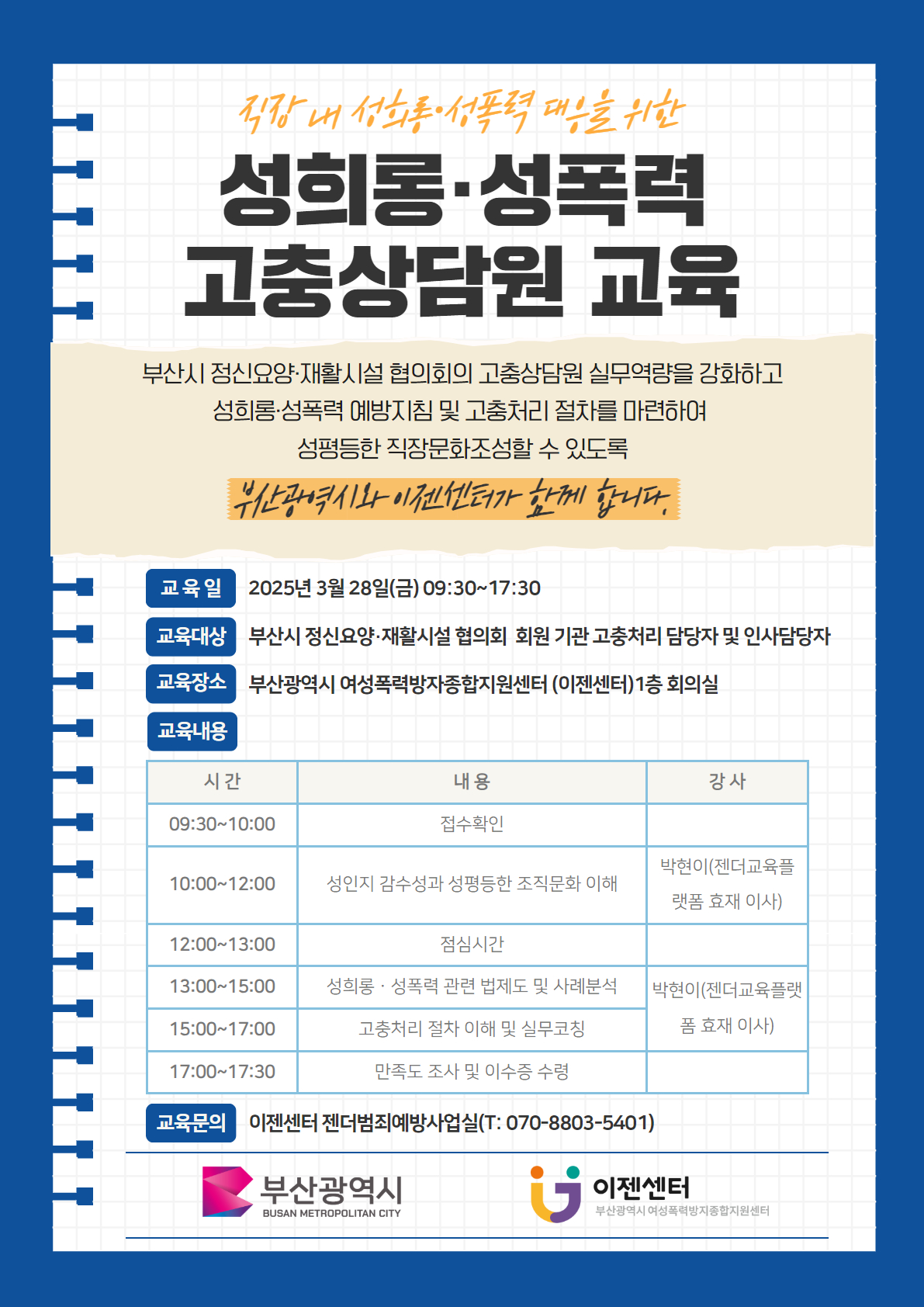 2025년 1차 성희롱·성폭력 고충상담원 교육 안내