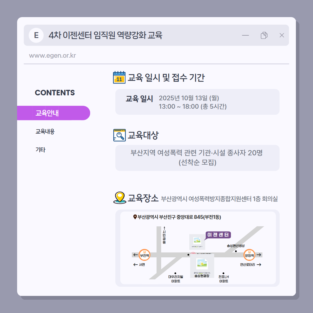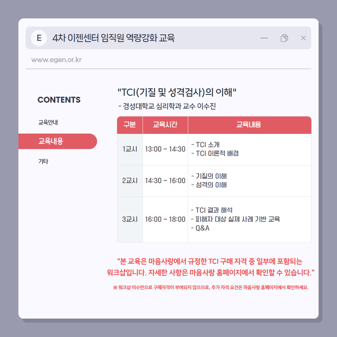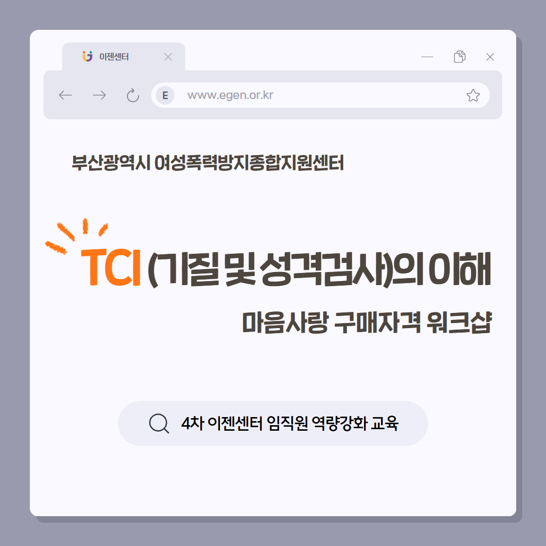 [부산광역시 여성폭력방지종합지원센터] 이젠센터 임직원 대상 역량강화 교육 - TCI 워크숍