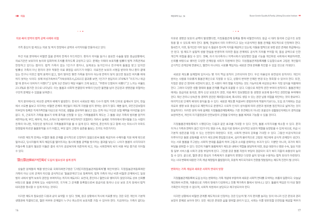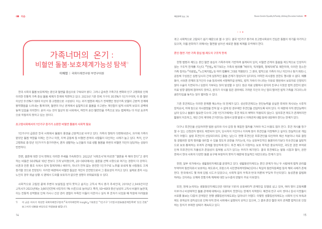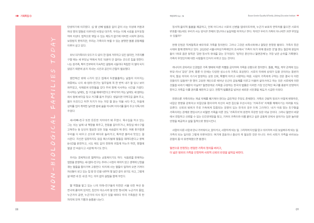 [부산여성가족과 평생교육진흥원] 발간물 「여성우리」 74호